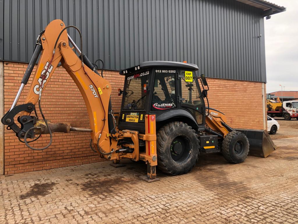 A type of excavating equipment, or digger, consisting of a digging bucket on the end of a two-part articulated arm. It is typically mounted on the back of a tractor or front loader, the latter forming a "backhoe loader".